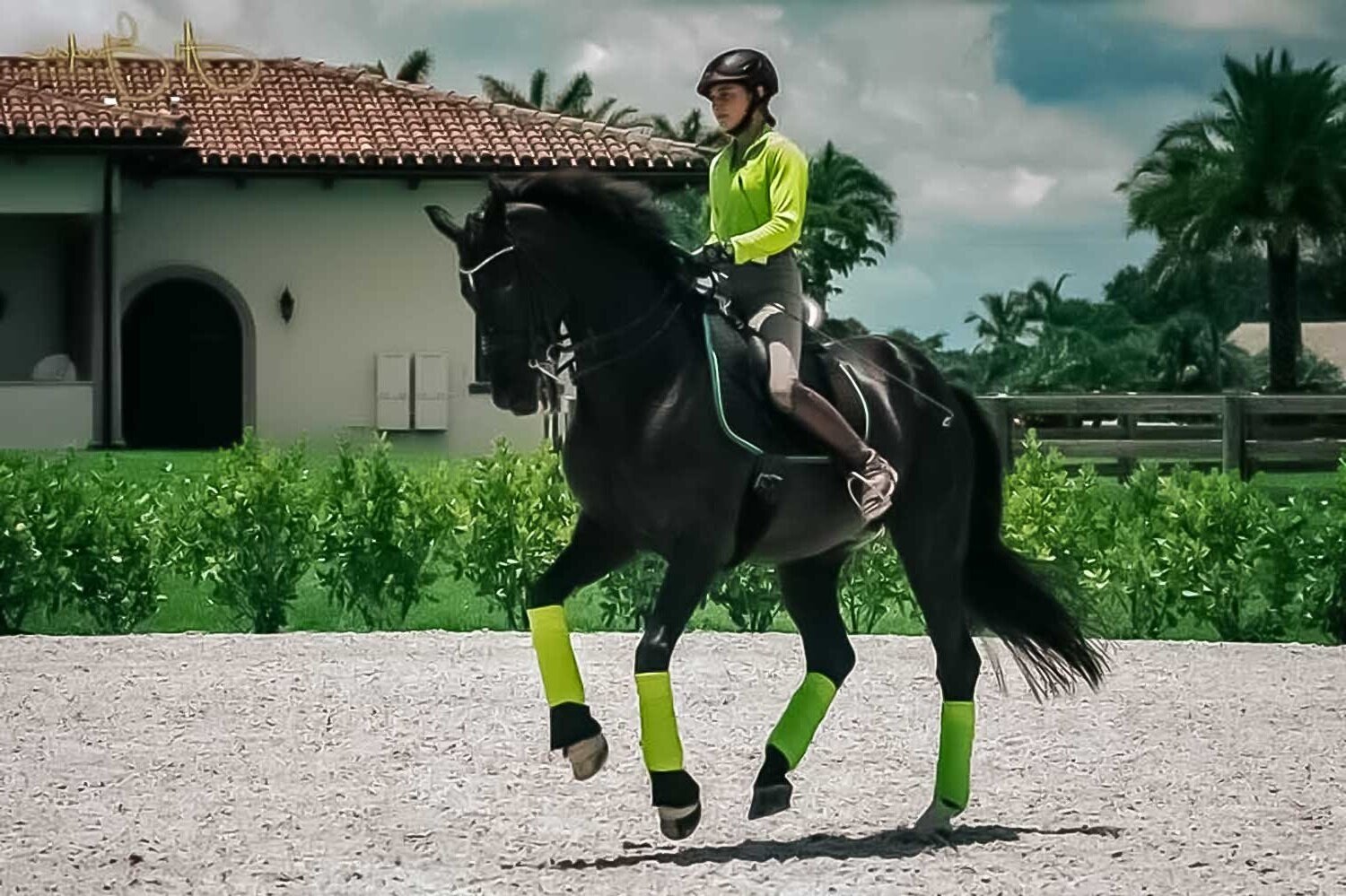Alessandra also uses her Flapless EQ saddle on two other horses: Mare Anastasia, who indicated her immediate preference during a lesson with Conrad Schumacher in Wellington, FL and now on International Grand Prix horse Sagacious HF! She says, "Sagacious is super, and I absolutely love the saddle on him. It feels so much more comfortable to ride in, and doesn't bounce me out like the conventional one. He also feels freer in the shoulders. I feel much closer to his body, so he really feels my half halts.
