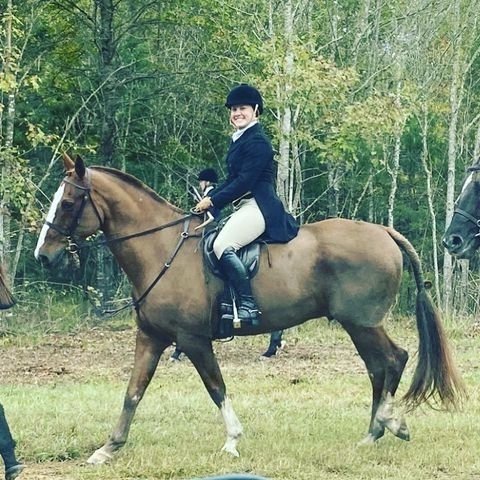 “ I had to share a photo of me and my horse in his EQ monoflap jumping saddle! It has changed our lives! My back and sacroiliac joints no longer hurt after riding, he is more comfortable and free in all gaits and doesn’t buck after landing a fence! Blaze is an 18 year old Clydesdale/Thoroughbred/Quarterhorse cross. Here we are at Opening Hunt with the Hardaway Hounds in Mississippi!