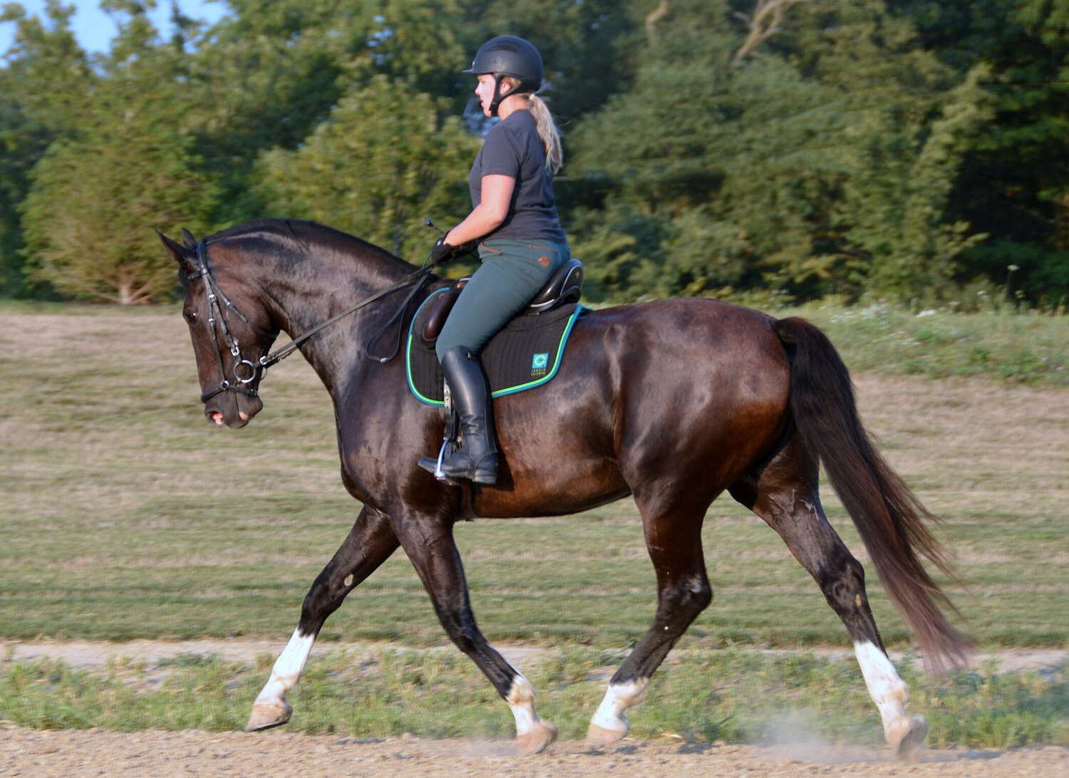 In all three gaits he was slower than normal at first.... and how did you know he'd want to stretch?! I can never stretch as early in the ride as I could in my very first ride in your saddle!! He was so so so much lighter in my hands as he could feel my leg and seat aids sooner, and he was much much more reactive to my downward transition seat aids.